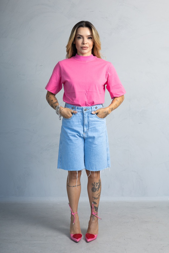 Tshirt com modelagem tradicional de camiseta gola''O'' com ribana e costura ombro a ombro.