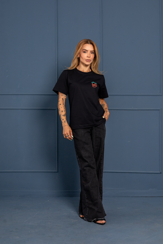 Tshirt com modelagem tradicional de camiseta gola''O'' com Gola em Ribana Canelada e costura ombro a ombro.