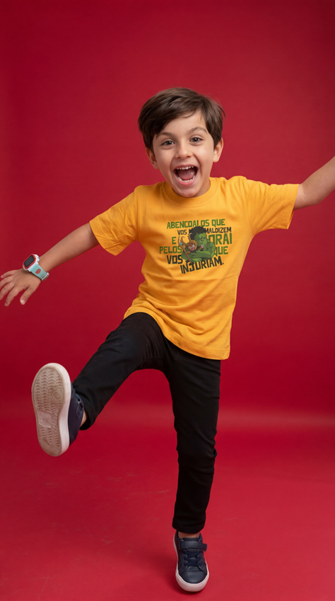 Tshirt Infantil Com modelagem tradicional de camiseta gola''O''e costura ombro a ombro.