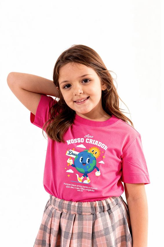Tshirt Infantil Com modelagem tradicional de camiseta gola''O''e costura ombro a ombro.