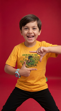 Tshirt Infantil Com modelagem tradicional de camiseta gola''O''e costura ombro a ombro.