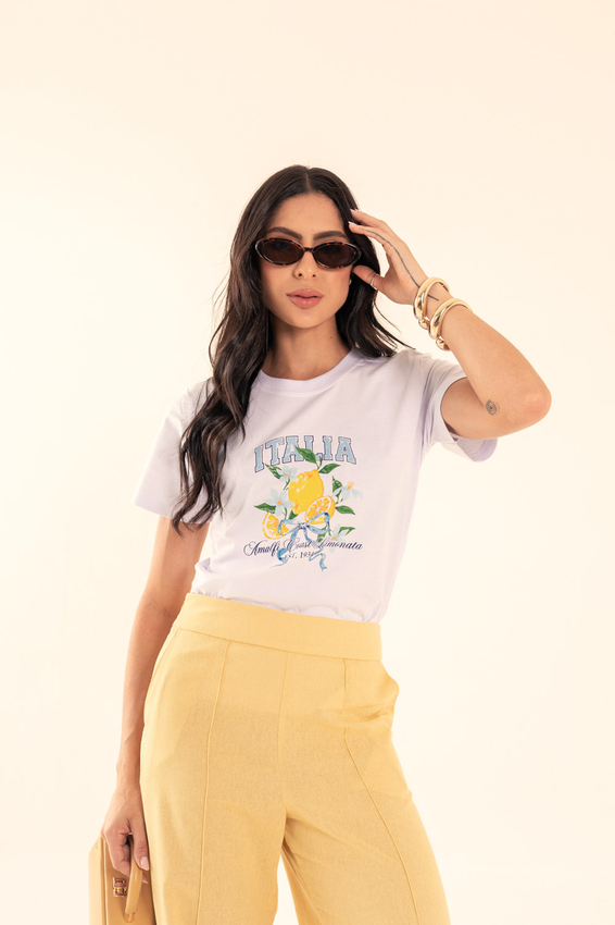 Tshirt com modelagem tradicional de camiseta gola''O'' com Gola em Ribana Canelada e costura ombro a ombro.