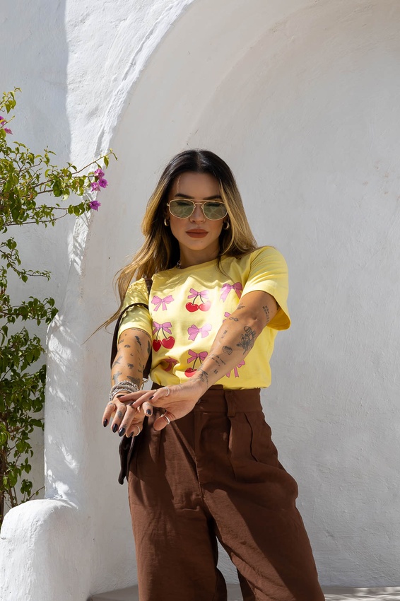 Tshirt com modelagem tradicional de camiseta gola''O'' com ribana e costura ombro a ombro.