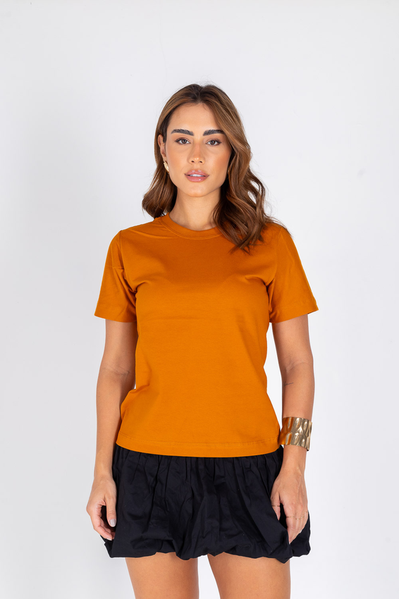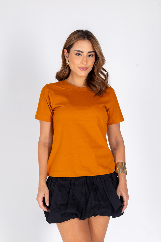 Tshirt com modelagem tradicional de camiseta gola''O'' com Gola em Ribana Canelada e costura ombro a ombro.