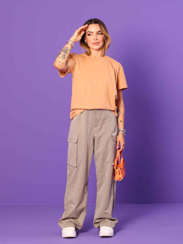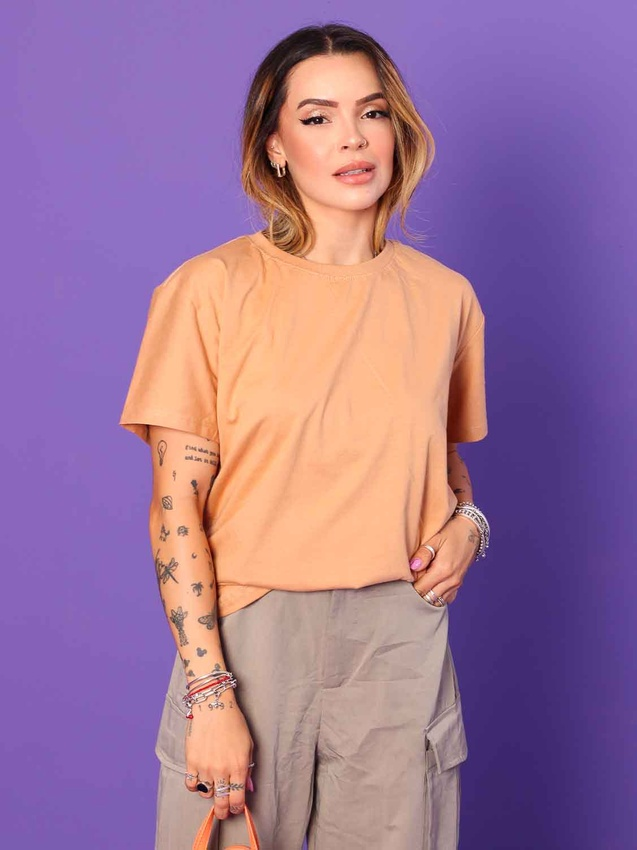 Tshirt com modelagem tradicional de camiseta gola''O'' com Gola em Ribana Canelada e costura ombro a ombro.