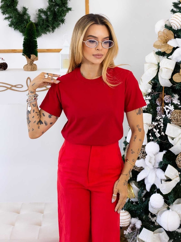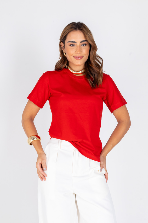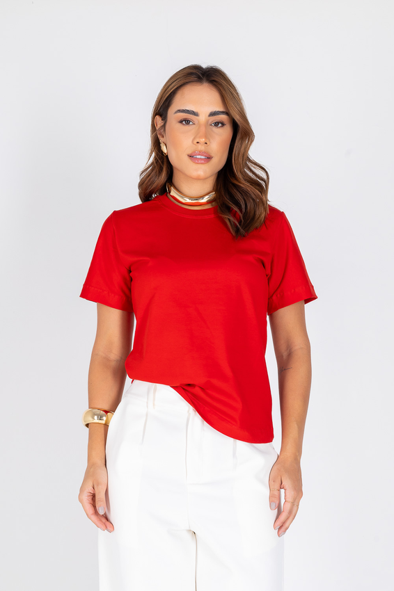 Tshirt com modelagem tradicional de camiseta gola''O'' com Gola em Ribana Canelada e costura ombro a ombro.