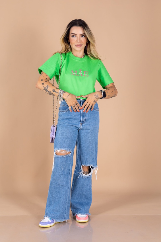 Tshirt com modelagem tradicional de camiseta gola''O'' com ribana e costura ombro a ombro.