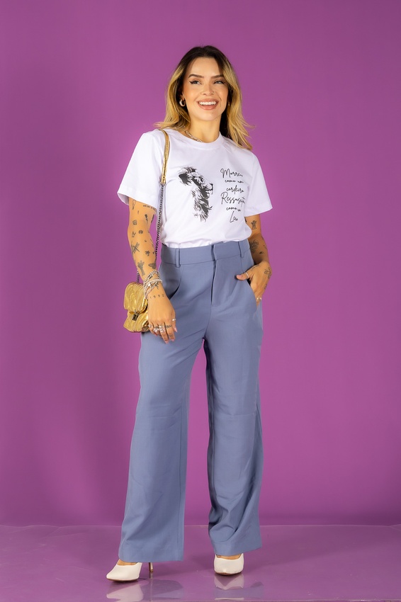 Tshirt com modelagem tradicional de camiseta gola''O'' com ribana e costura ombro a ombro.