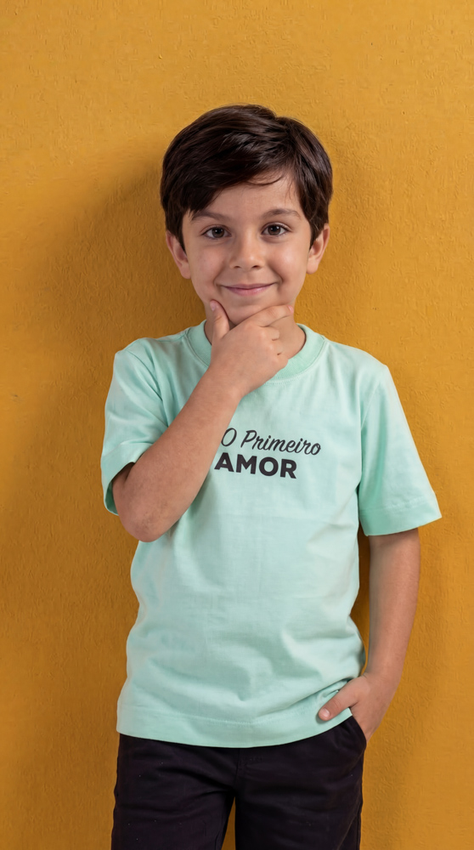 Tshirt Infantil Com modelagem tradicional de camiseta gola''O''e costura ombro a ombro.