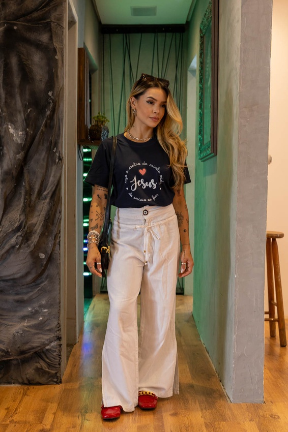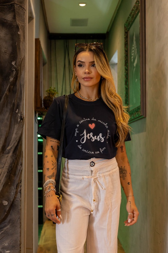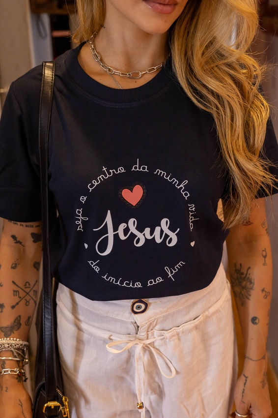 Tshirt com modelagem tradicional de camiseta gola''O'' com ribana e costura ombro a ombro.