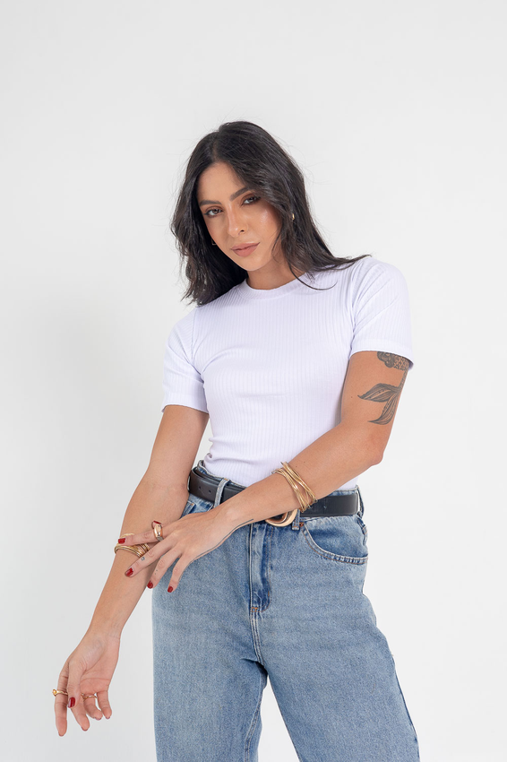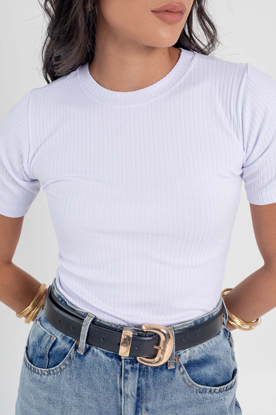 Tshirt canelada SOHO com modelagem tradicional de gola'' O''