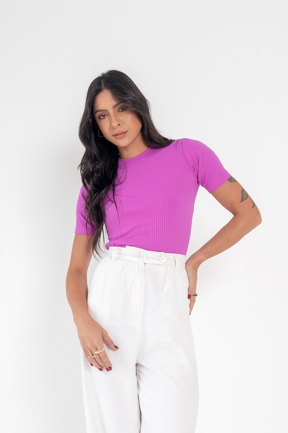 Tshirt canelada SOHO com modelagem tradicional de gola'' O''