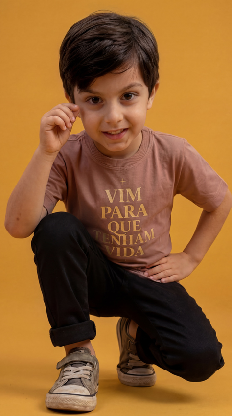 Tshirt Infantil Com modelagem tradicional de camiseta gola''O''e costura ombro a ombro.