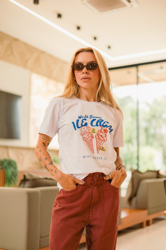 Tshirt com modelagem tradicional de camiseta gola''O'' com Gola em Ribana Canelada e costura ombro a ombro.