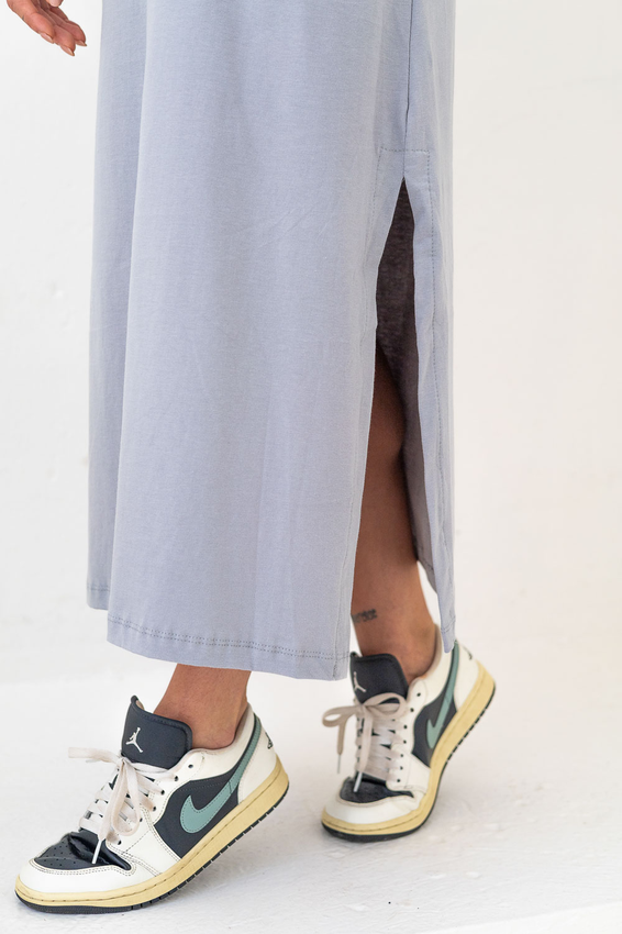 Vestido Midi de Mangas com modelagem tradicional de gola''O'' com ribana e costura ombro a ombro.