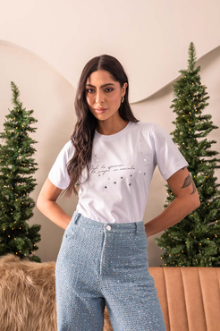Tshirt Coração Pedraria Prata Aplicação