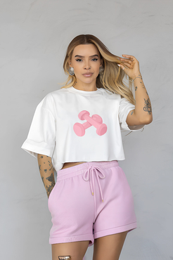 Cropped Max Corações Brancos Espalhados