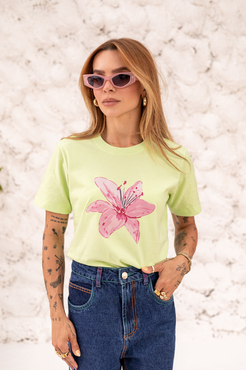 Tshirt Bordada Florzinhas Vermelhas Mangas