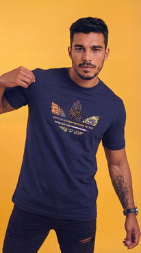 Camiseta Masculina com modelagem tradicional de gola'' O''