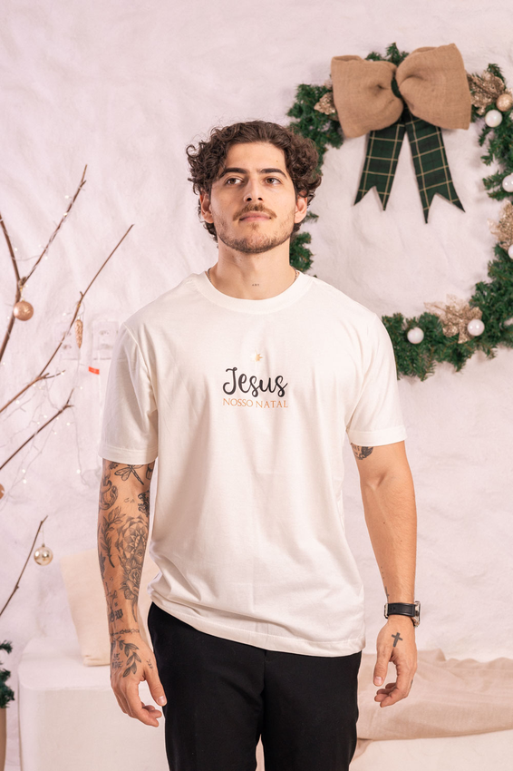 Camiseta Masculina com modelagem tradicional de gola'' O''