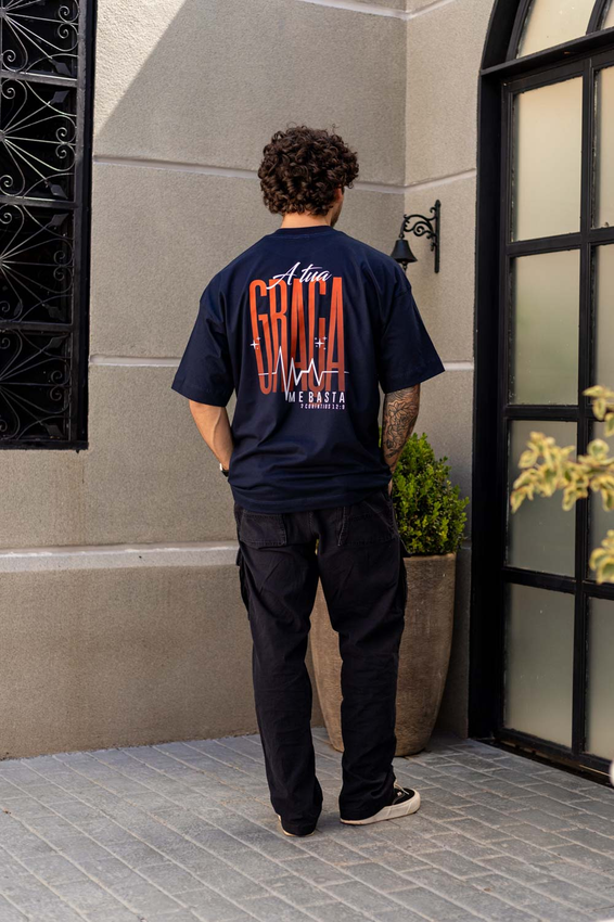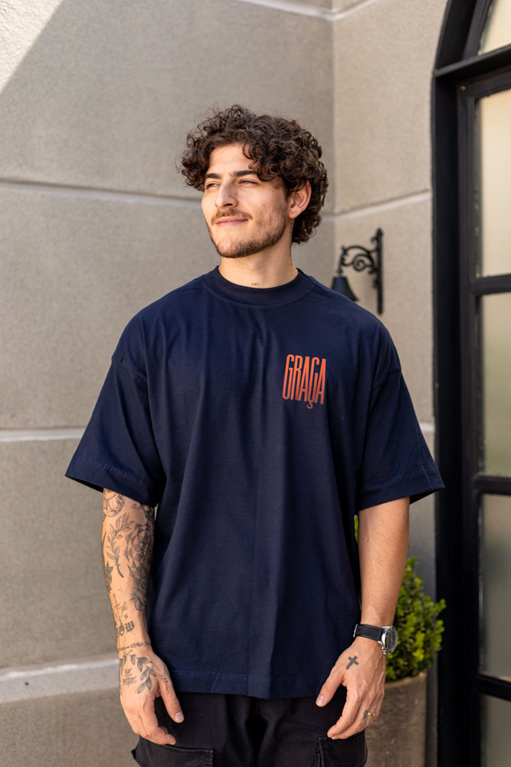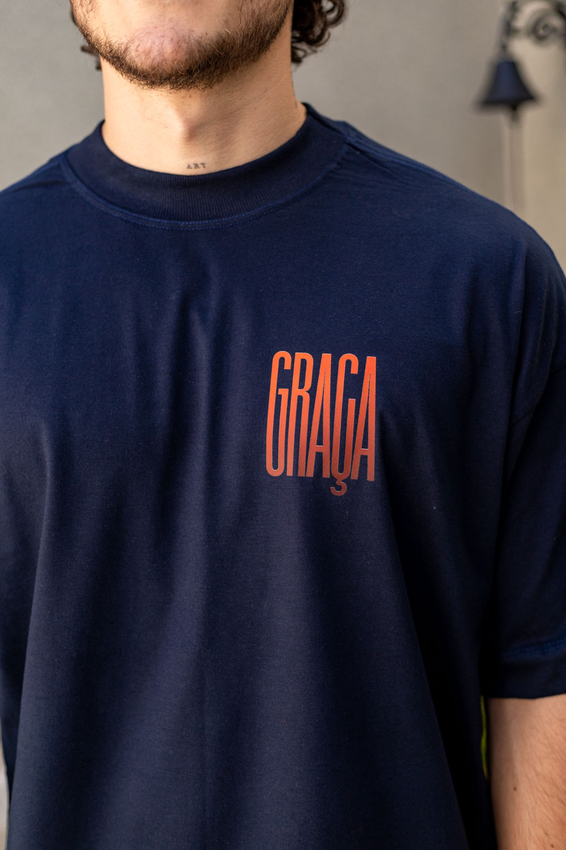 Camiseta Over com modelagem tradicional de camiseta Gola Alta em Ribana Canelada e costura ombro a ombro.