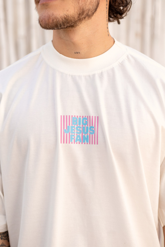 Camiseta Over com modelagem tradicional de camiseta Gola Alta em Ribana Canelada e costura ombro a ombro.