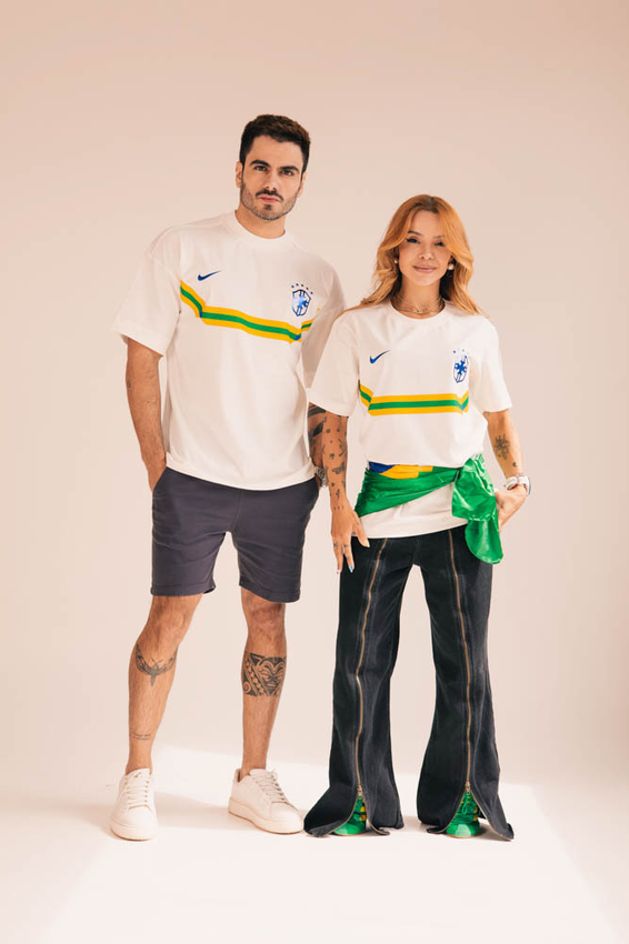 Camiseta Over com modelagem tradicional de camiseta Gola Alta em Ribana Canelada e costura ombro a ombro.