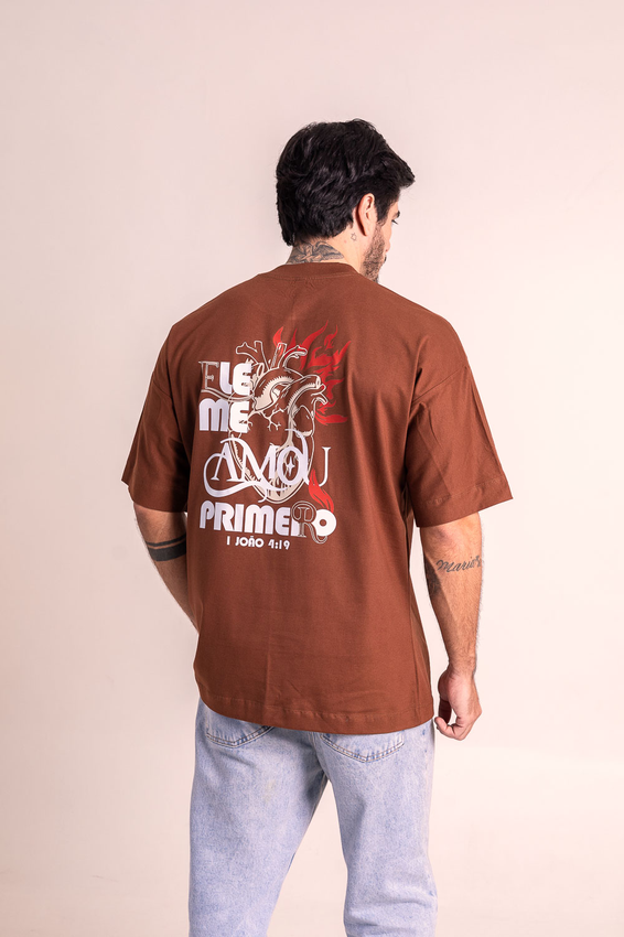 Camiseta Over com modelagem tradicional de camiseta Gola Alta em Ribana Canelada e costura ombro a ombro.