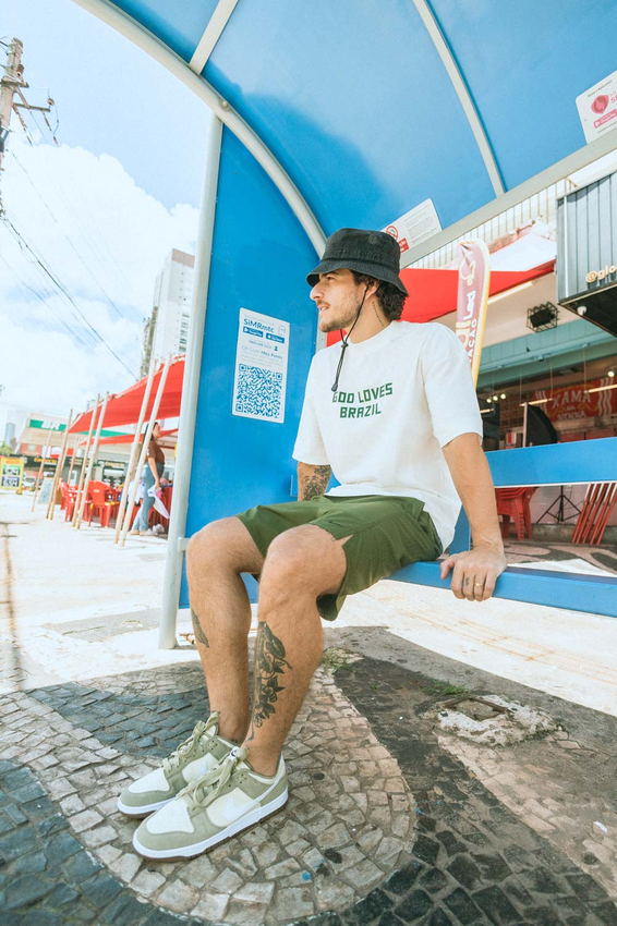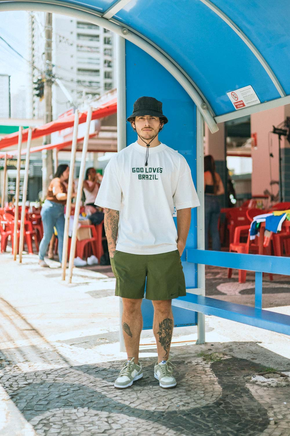 Camiseta Over com modelagem tradicional de camiseta Gola Alta em Ribana Canelada e costura ombro a ombro.