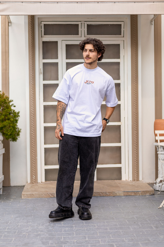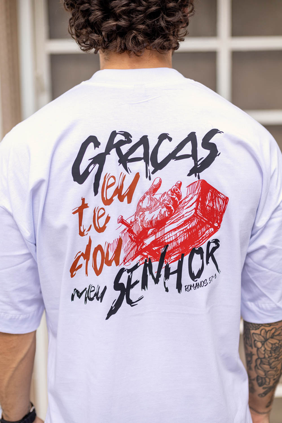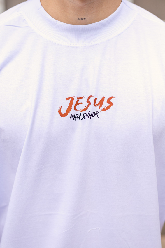 Camiseta Over com modelagem tradicional de camiseta Gola Alta em Ribana Canelada e costura ombro a ombro.