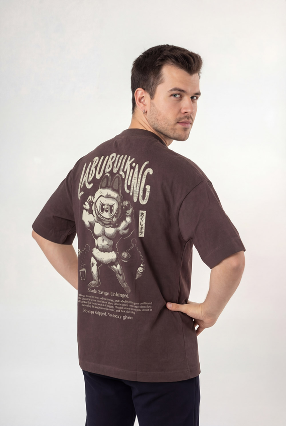 Camiseta Over com modelagem tradicional de camiseta Gola Alta em Ribana Canelada e costura ombro a ombro.
