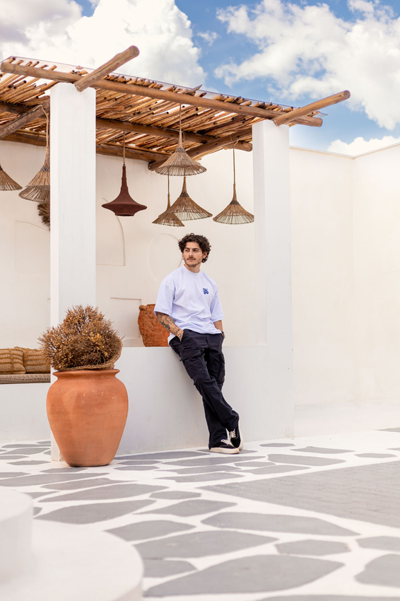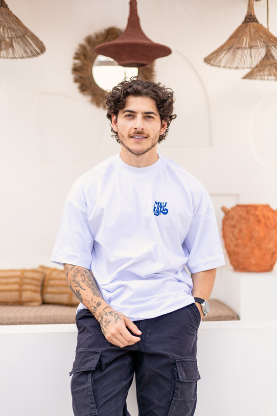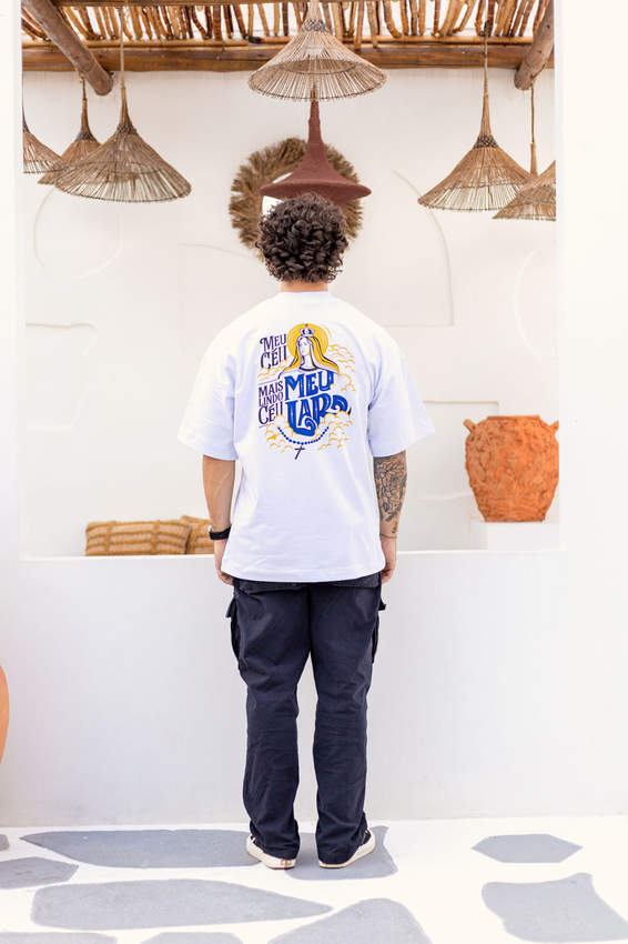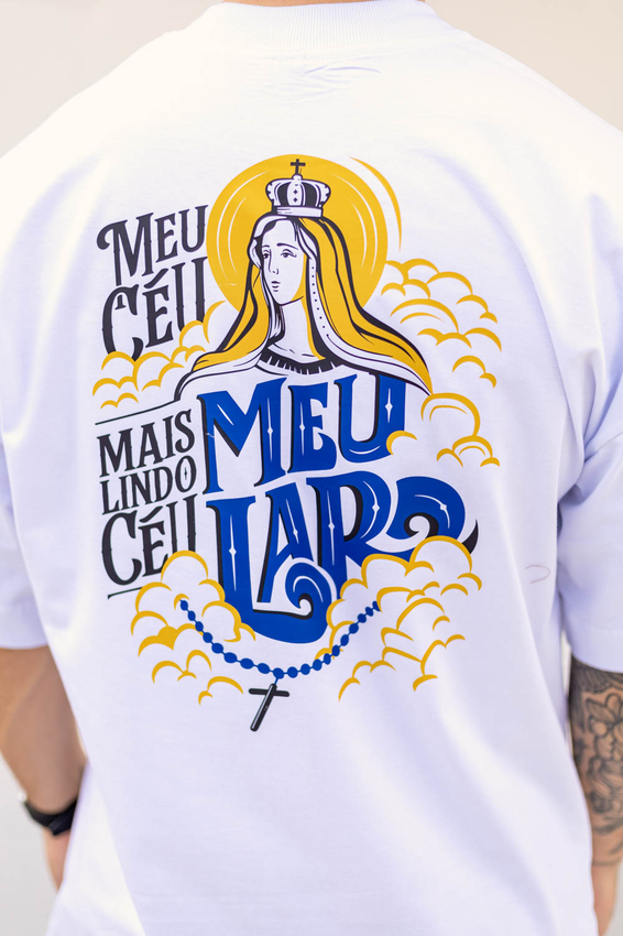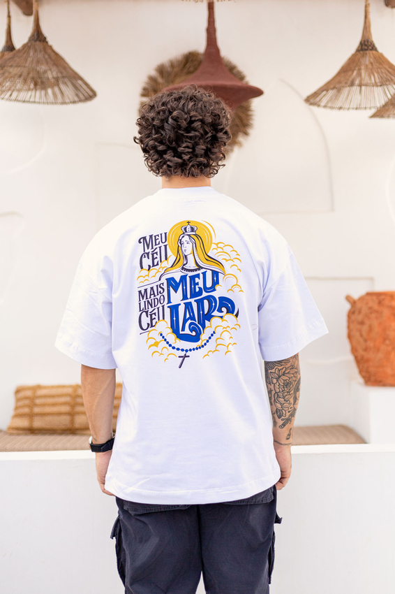 Camiseta Over com modelagem tradicional de camiseta Gola Alta em Ribana Canelada e costura ombro a ombro.