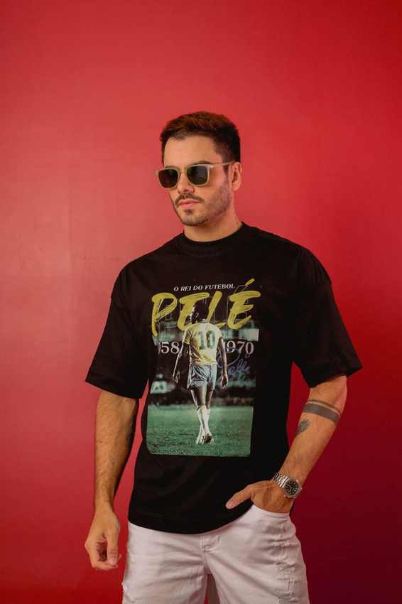 Camiseta Over com modelagem tradicional de camiseta Gola Alta em Ribana Canelada e costura ombro a ombro.