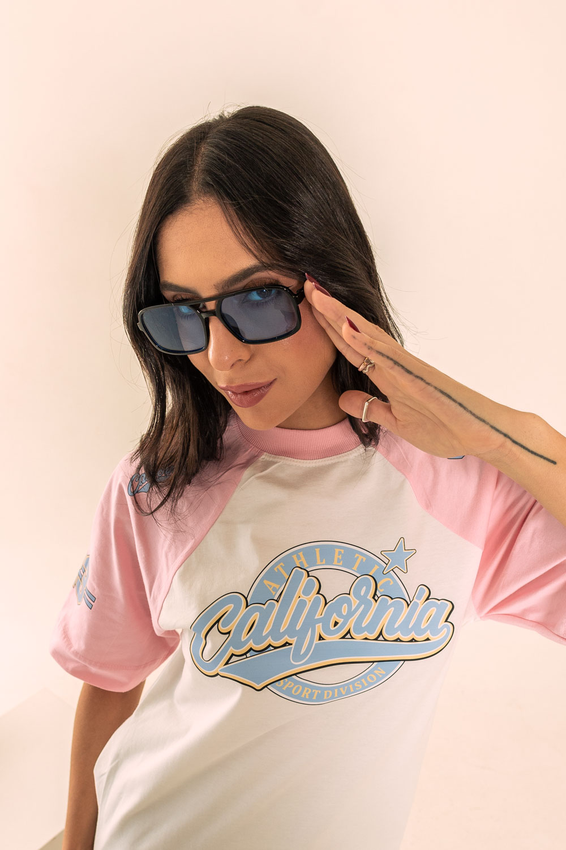 Camiseta Over com modelagem Raglan, com Gola em Ribana Canelada