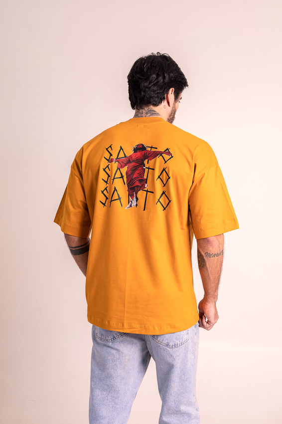 Camiseta Over com modelagem tradicional de camiseta Gola Alta em Ribana Canelada e costura ombro a ombro.
