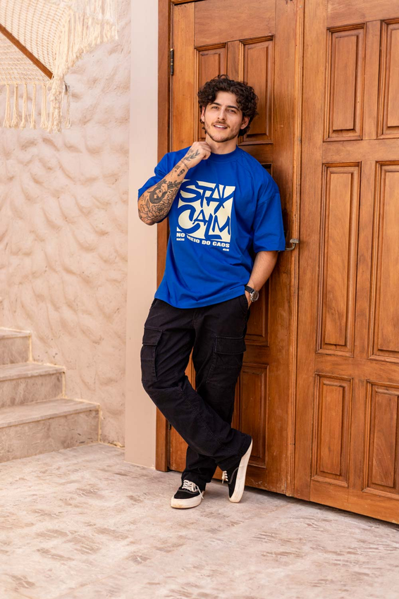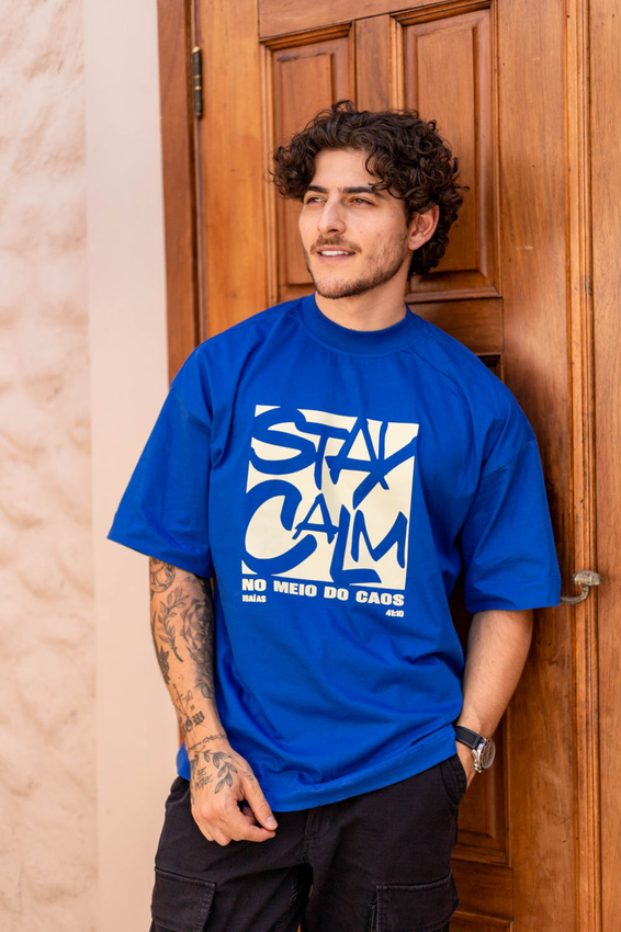 Camiseta Over com modelagem tradicional de camiseta Gola Alta em Ribana Canelada e costura ombro a ombro.