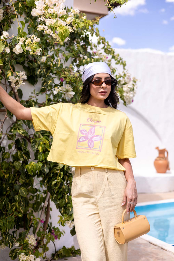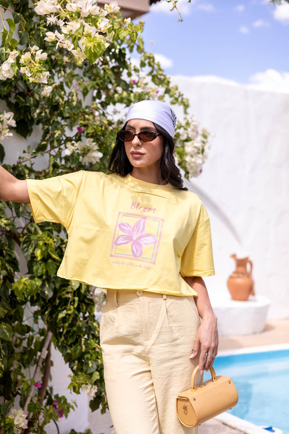 Cropped com modelagem tradicional de camiseta gola'' O''