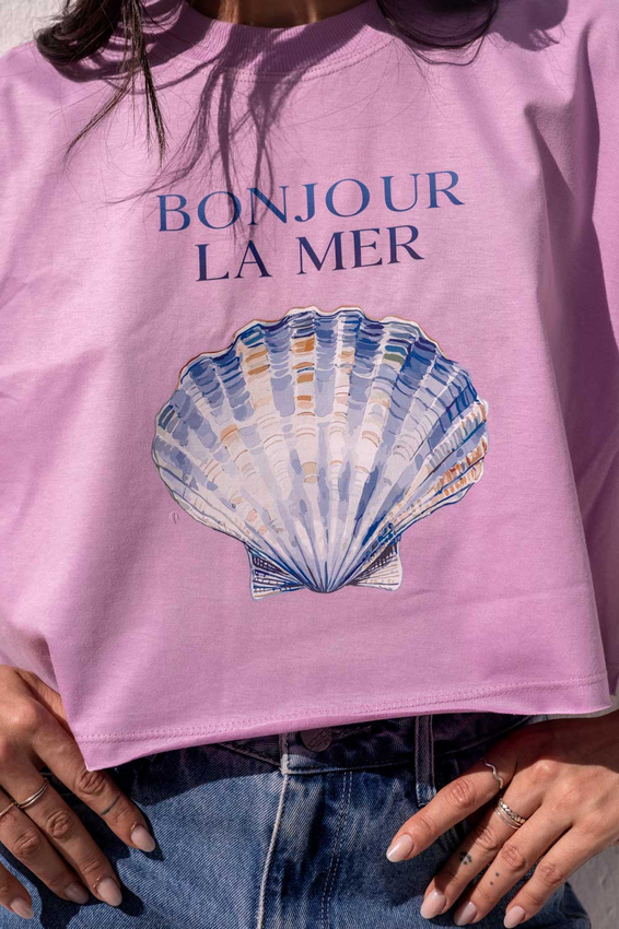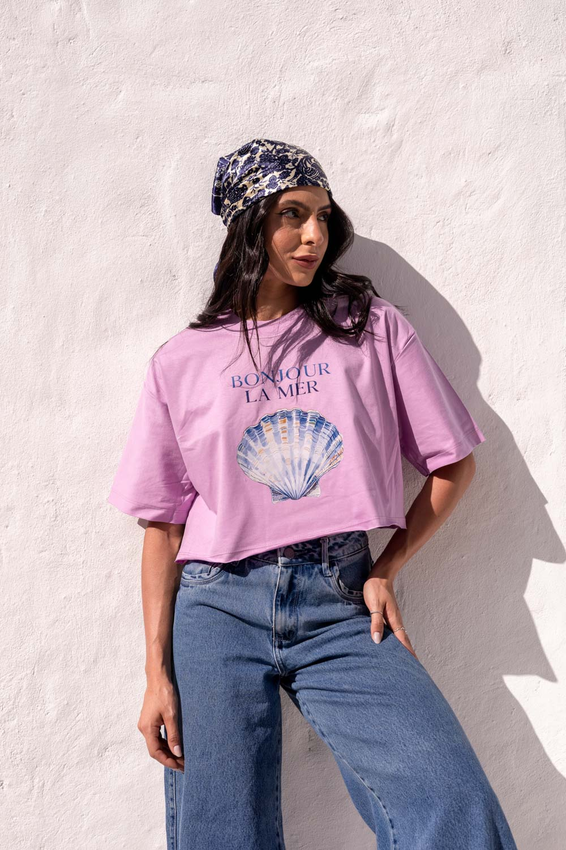 Cropped com modelagem tradicional de camiseta gola'' O''