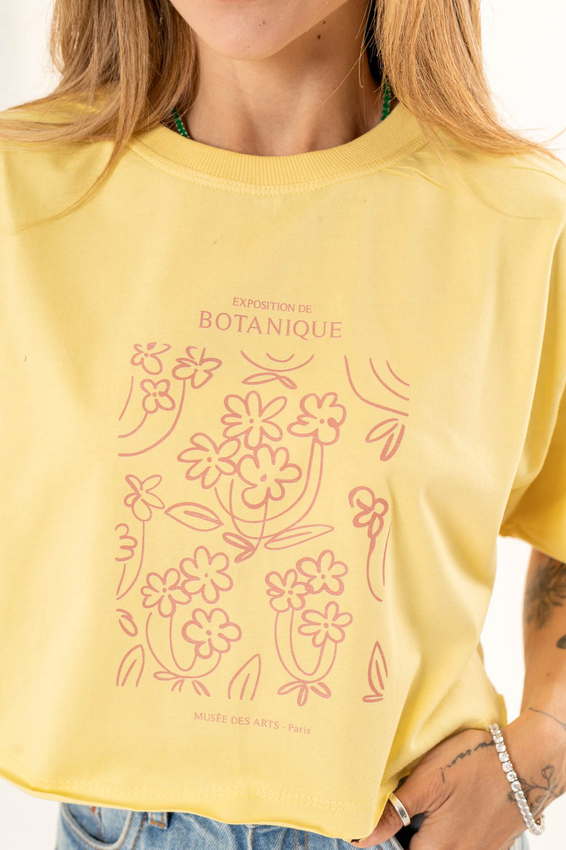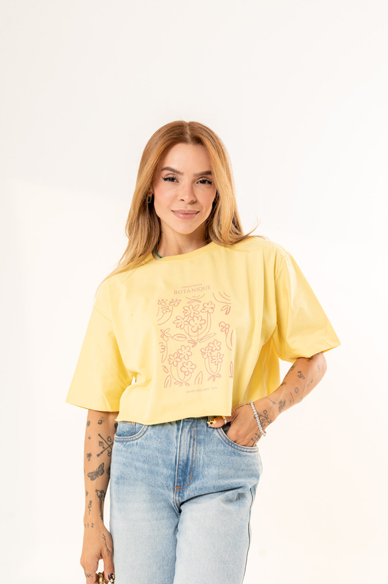 Cropped com modelagem tradicional de camiseta gola'' O''