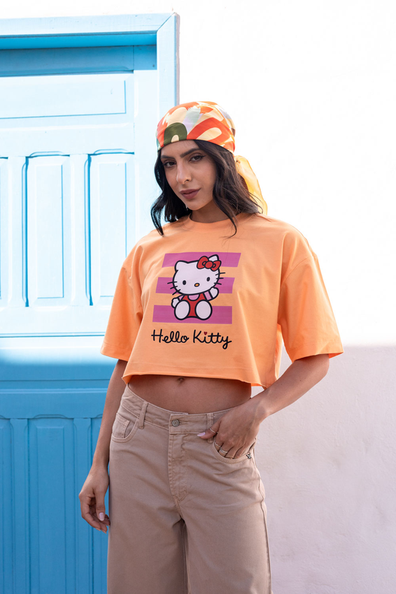 Cropped com modelagem tradicional de camiseta gola'' O''