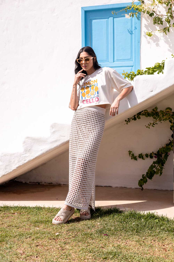 Cropped com modelagem tradicional de camiseta gola'' O''