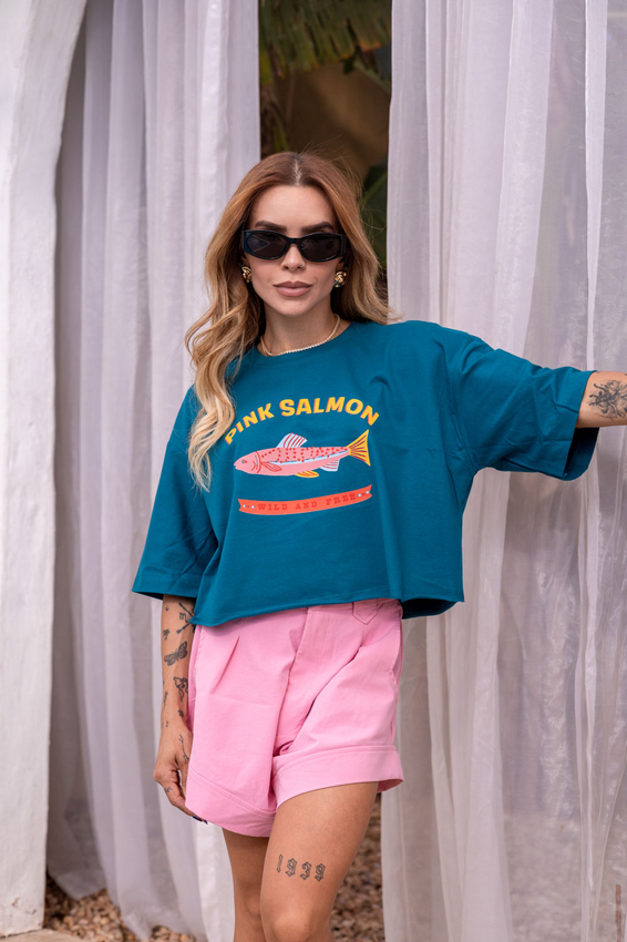 Cropped com modelagem tradicional de camiseta gola'' O''