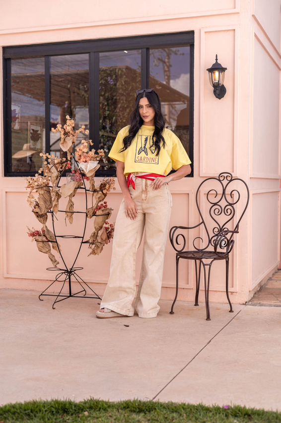 Cropped com modelagem tradicional de camiseta gola'' O''