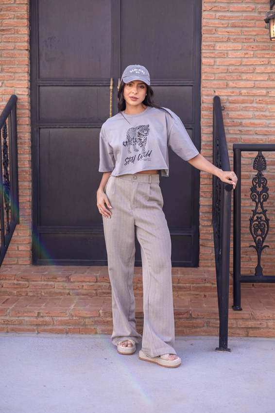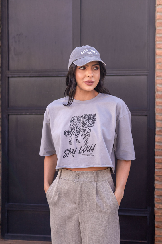 Cropped com modelagem tradicional de camiseta gola'' O''
