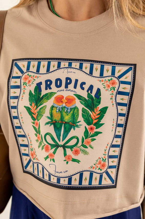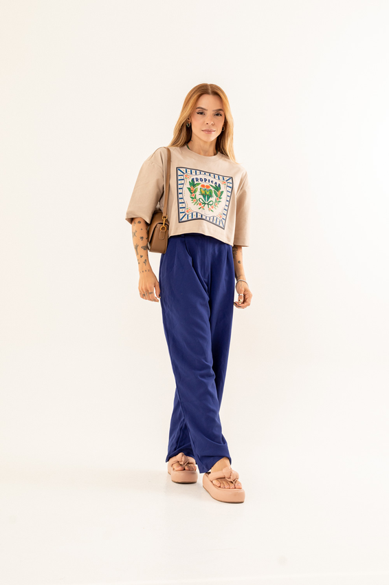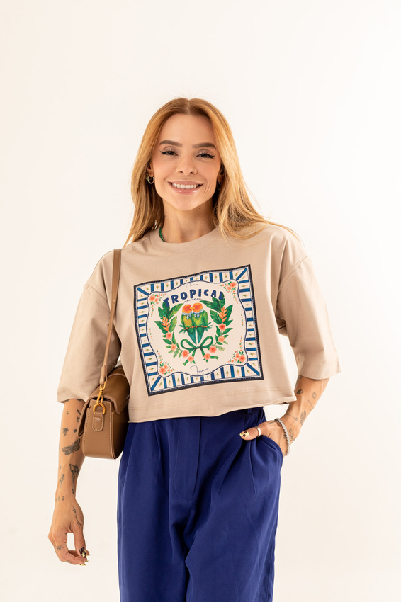 Cropped com modelagem tradicional de camiseta gola'' O''