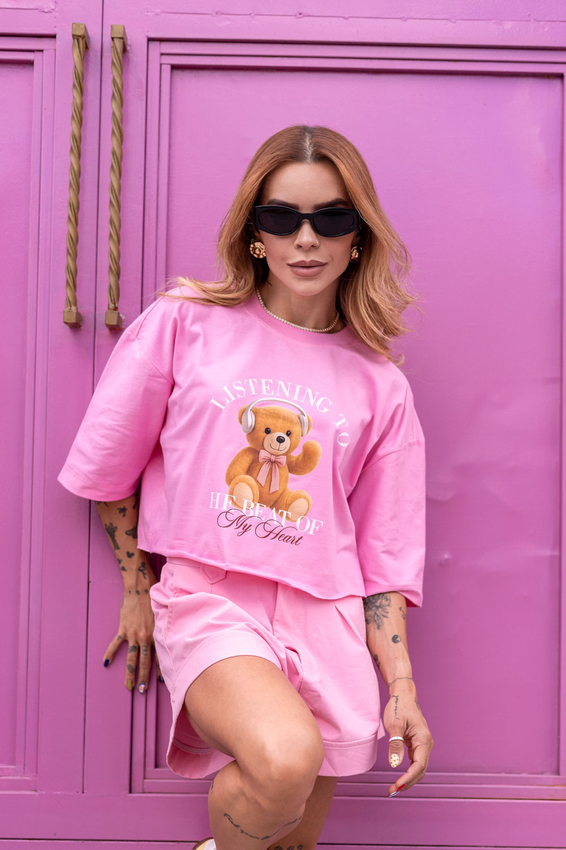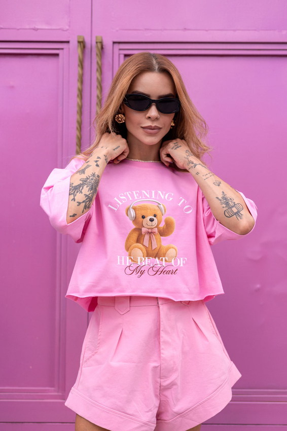 Cropped com modelagem tradicional de camiseta gola'' O''