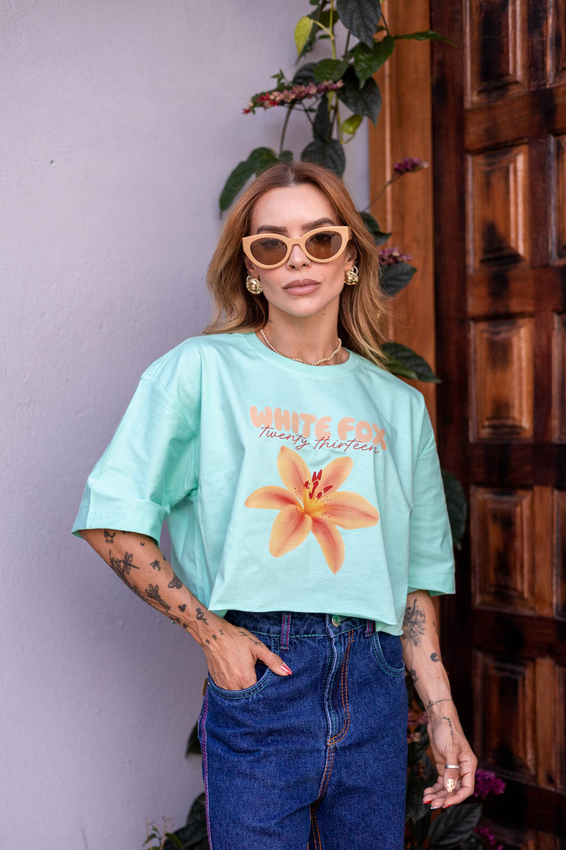 Cropped com modelagem tradicional de camiseta gola'' O''