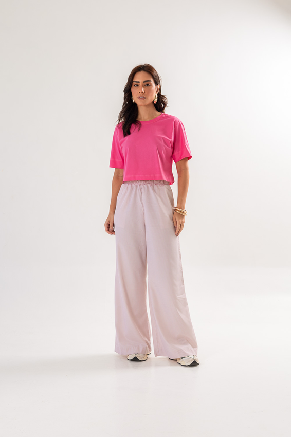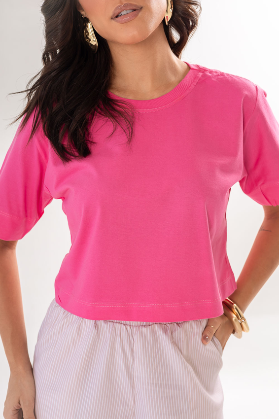 Cropped com modelagem tradicional de camiseta gola'' O''