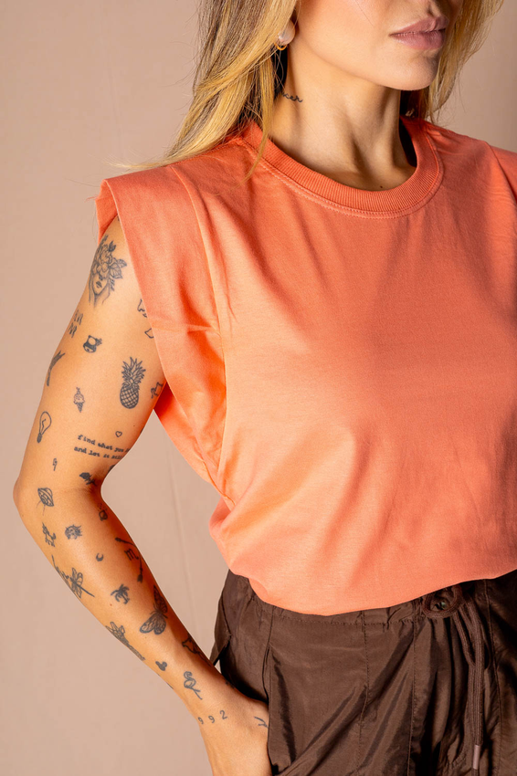 Tshirt Muscle com modelagem tradicional de camiseta gola''O'' com ribana e costura ombro a ombro.