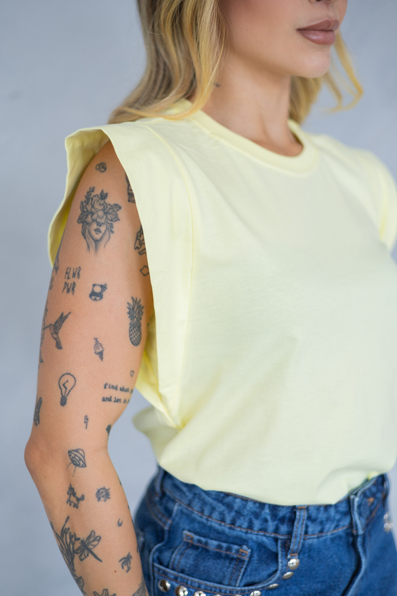 Tshirt Muscle com modelagem tradicional de camiseta gola''O'' com ribana e costura ombro a ombro.